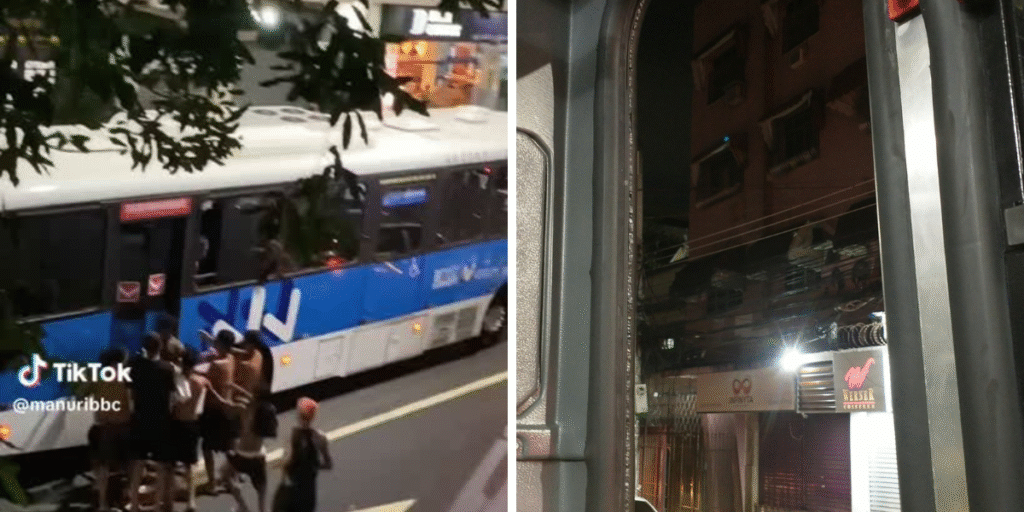 Dois ônibus, sendo um da Braso Lisboa, da linha 350 (Irajá x Castelo) e outro da Três Amigos, da linha 721 (Cascadura x Vila Cruzeiro) foram atravessados por criminosos na Rua Cacequi, próximo à Rua Guará, num dos acessos à comunidade. Em vídeo que circula nas redes sociais, bandidos encapuzados entram no ônibus da linha 721 e roubaram o caixa do ônibus.